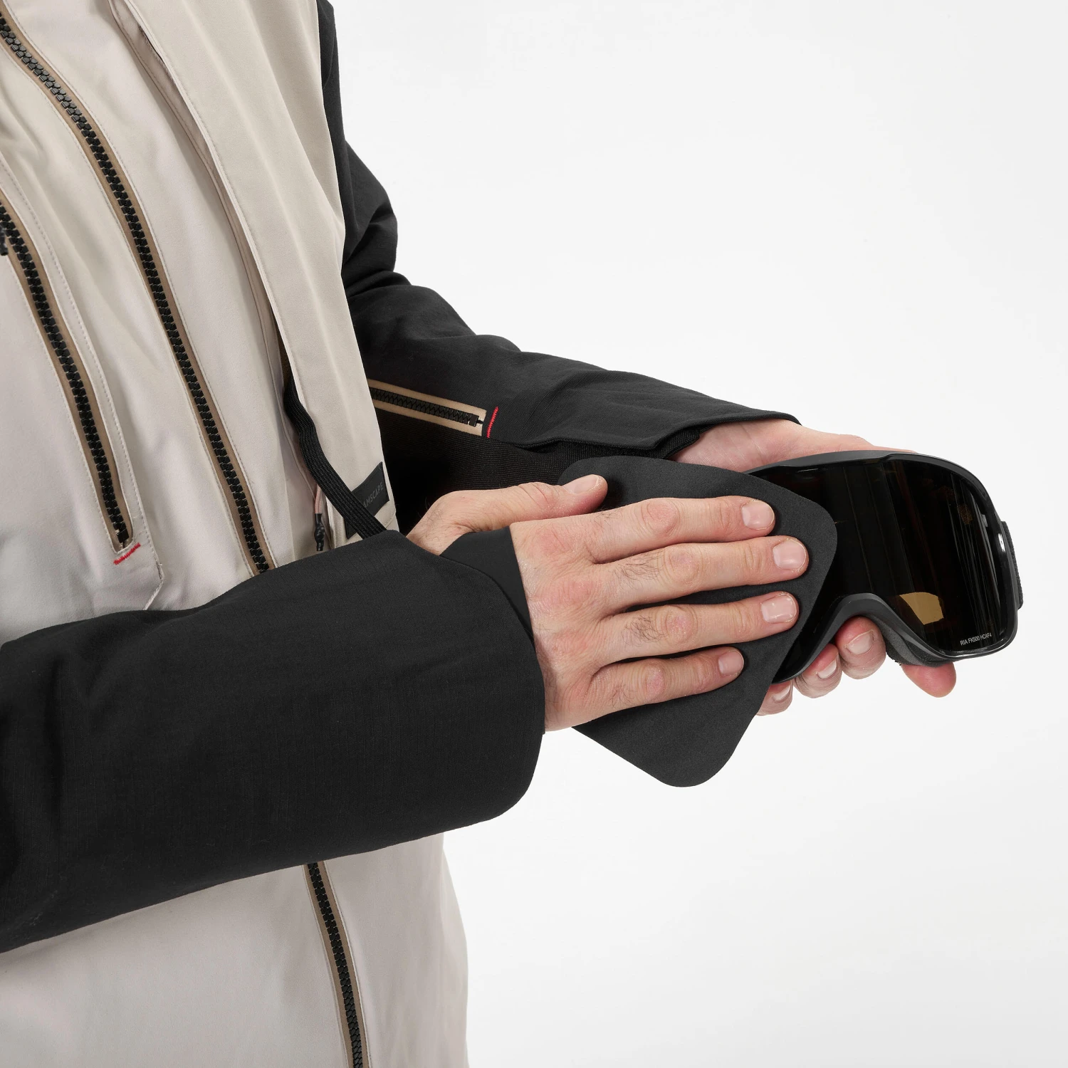 Our jackets have elasticated snow skirts that can be adjusted at the waist. If you fall or are in fresh snow, the seal keeps the snow out. In addition, this model is equipped with our hermetic and automatic handle clamping technology. The sleeve fits perfectly over your gloves or mittens.