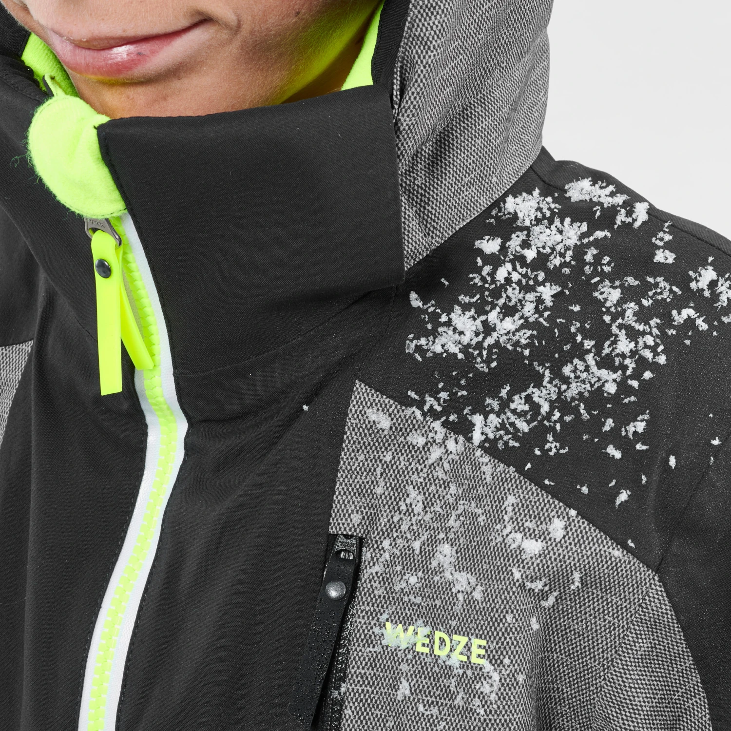 The snow skirt is a protective system located at waist level. It closes with press studs at the bottom of the ski jacket. It prevents snow and draughts from entering when practicing winter sports, especially in the event of a fall.