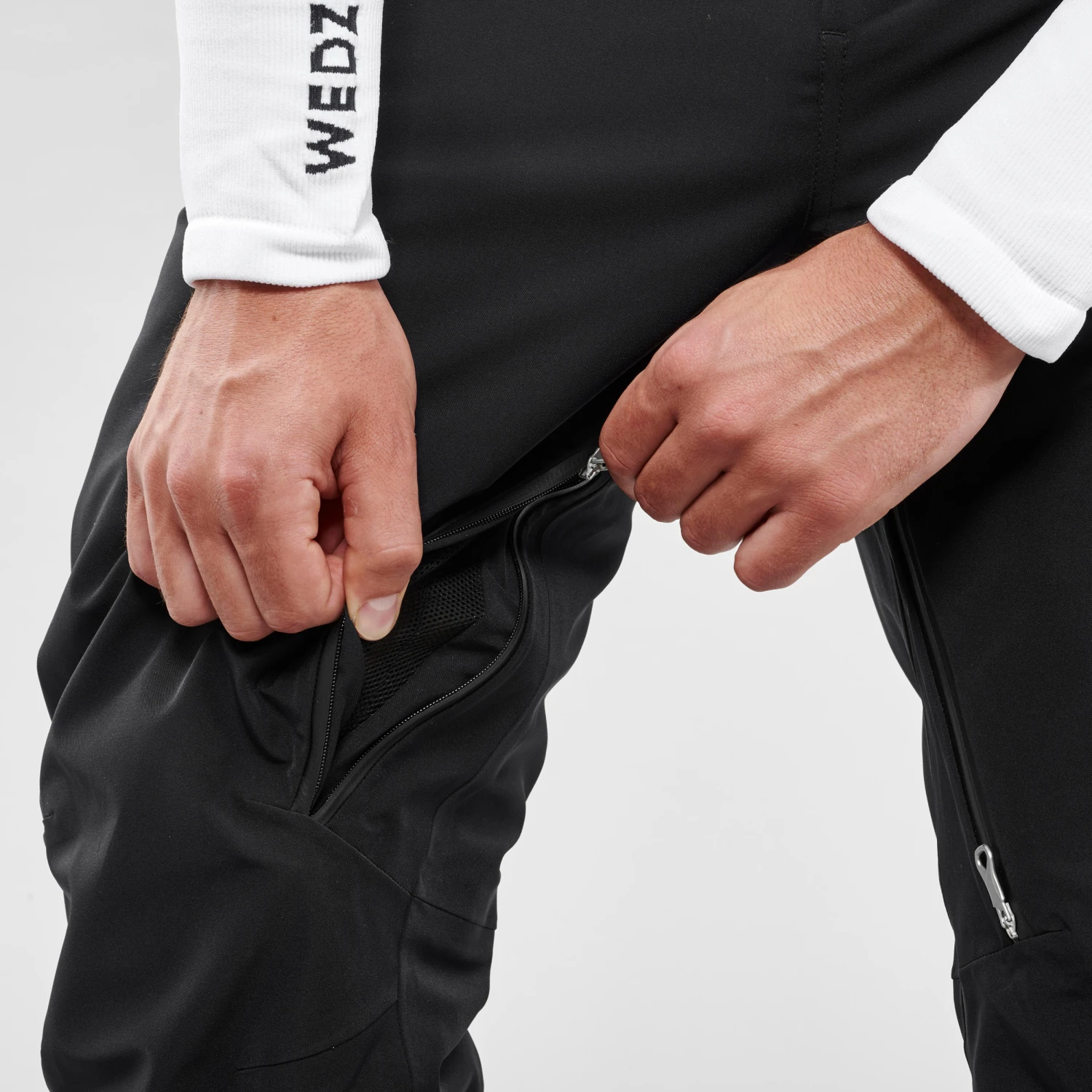This garment wicks away the water vapour produced by your body when exercising. To see if a fabric is breathable, its resistance to evaporative heat (RET) is measured in a standardised ISO 11092 test. The lower the RET, the more breathable the fabric. The 980 trousers have a RET of 8. However, it is the technical solutions (zips, vents, mesh) that Wedze uses, which reduce the condensation inside the garment and maximise breathability.