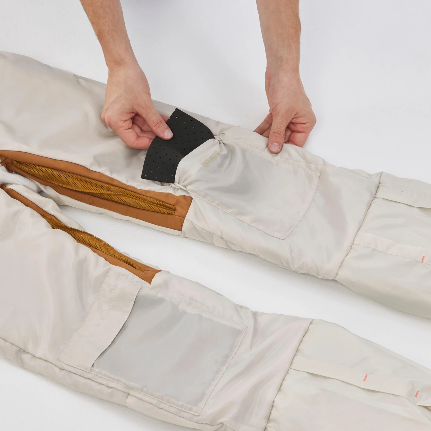 To keep you warm, we use faux-down wadding insulation. Wadding is a synthetic component made from polyester which stores more or less air, depending on the length of the fibres. Wadding can be standard, hi-tech or silicone-coated, each with different properties (warmth, light weight, elasticity, etc.). The Snowboard 500 trousers also come with WARM SEAT technology which improves the insulation on the seat by 54% when sitting in the snow.