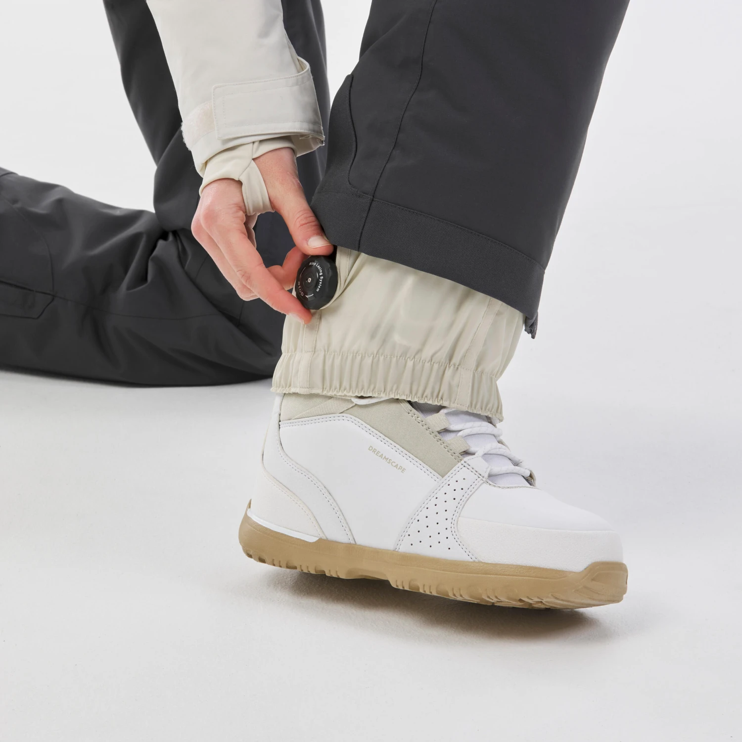 Our trousers have elasticated gaiters which can be adjusted around the boots. If you fall or are in fresh snow, the seal keeps the snow out.